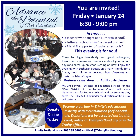 Join many friends of Lutheran Education in Portland, OR for an evening of good food, drink and the opportunity to further support this ministry.